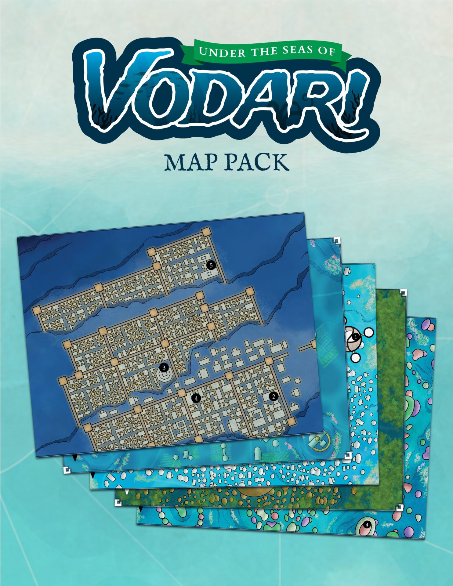 This map pack provides you with 20+ maps of cities and adventure locations to support an Under the Seas of Vodari or any undersea campaign.